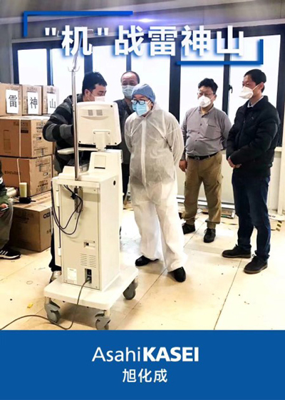 政府から指定されるということはたいへん名誉なことであった。しかし、医療機器は納品するだけでは終わらない。現地に赴き設置と装置の使い方について指導を行う必要がある。当時はまだ罹患した場合の治療方法もはっきりしていない状況であったが、旭化成医療機器(杭州)の社員3名が、重症患者の治療に役立つのなら、と現地入りに手を挙げた。