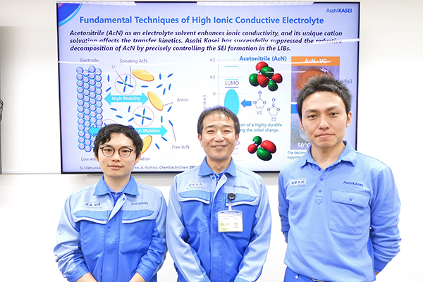 LIBの生みの親である旭化成名誉フェロー吉野彰が率いる吉野研究室では、このアセトニトリルを使いこなせるようになれば、LIBに大きなブレイクスルーが生み出せると信じ、研究開発に心血を注いできた。そして、長年の不屈の研究開発によって、2016年には溶媒にアセトニトリルを使用した「超イオン伝導性電解液」の基本的な技術を確立した。