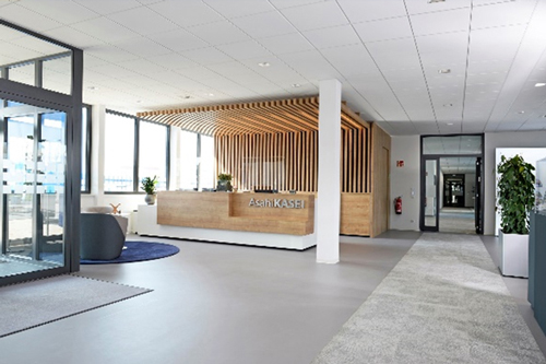 当オフィスには、旭化成ヨーロッパ、旭化成マイクロデバイスヨーロッパのほかに、ドルマーゲン市のケムパークに所在していた欧州R&Dセンターも2021年3月に移転をしており、当社にとってはマテリアル領域における営業、マーケティングそしてR&D機能が融合された初めての拠点となります。また、展示スペースやディスカッションスペースも拡充され、より活発な社内連携が可能になり、迅速な顧客対応、市場への新ソリューションの提案、ならびに現地パートナーとの共同研究開発プロジェクトの積極的な促進など、社内外のコネクト(連携)をよりいっそう深められることが期待できます。