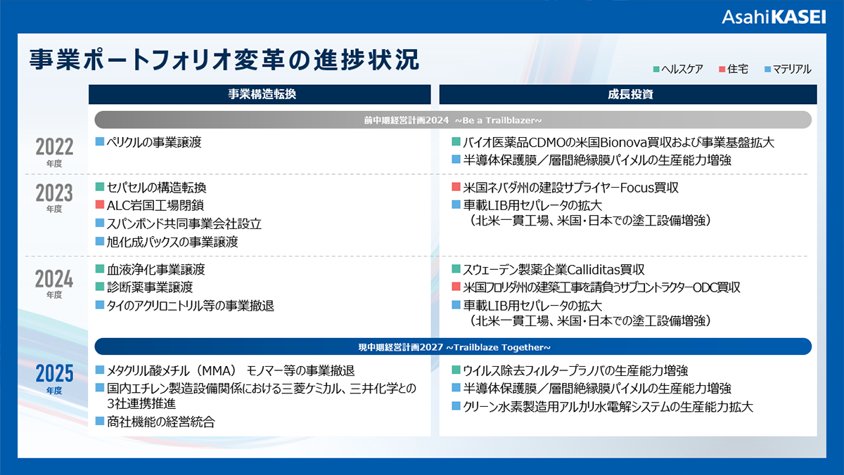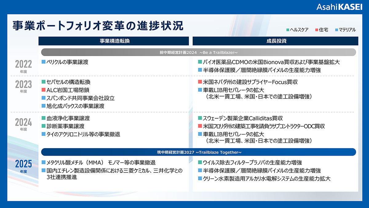 - 「当社は事業ポートフォリオ変革を進めており、今後は成長分野にリソースをさらに集中させます。今回の事業譲渡は、利益成長を牽引する電子材料等のエレクトロニクス事業の強化や、カナダにおける製膜・塗工一貫工場の建設を通じた北米でのリチウムイオン電池用セパレータ事業の拡大など、将来を見据えた取り組みをさらに加速させていく上で重要な一歩です。」
