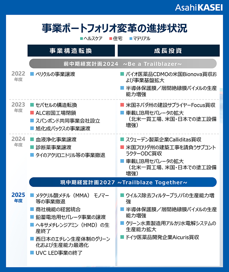 - 当社は『中期経営計画2027 ~Trailblaze Together~』のもと、資本効率の改善と投資成果創出による利益成長を目指しています。この方針に基づき、ベストオーナー視点での改革や他社連携も含めた事業構造転換と経営資源の再配分を進めています。さらに、成長分野と位置づけた事業へのさらなる投資を通じて、企業価値の向上を図ってまいります。