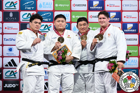 100kg超級に出場した中野は1回戦から登場しました。地元フランス選手との初戦では、大歓声の中でも動じることなく勝負所を見極め、終盤に小外刈で「有効」を奪取し、好スタートを切りました。2回戦では長身の大型選手を相手に内股すかしで一本勝ち。準々決勝では足車や肩車で着実にポイントを重ね、準決勝へ進出します。準決勝では、2024年世界王者のキム・ミンジョン選手(韓国)と対戦。左組み同士の相四つとなったこの一戦で、開始22秒に小内刈で「技あり」を先取すると、その後も主導権を握って試合を優位に進め、優勢勝ちで決勝進出を決めました。決勝は同門の太田彪雅との対戦。序盤から積極的に攻め続ける中野に対し、太田も反撃を見せ、一進一退の攻防が続きました。試合終了のブザーと同時に太田が3つ目の指導を受け、指導の累積による反則負けとなり、中野が優勝。自身2度目のグランドスラム制覇を果たしました。