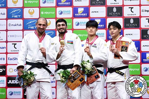 大会2日目、藤原は2回戦から登場。内股で技ありを先取すると、相手が技をかけて崩れた一瞬の隙を逃さず、腕挫十字固で一本勝ちを収め、好スタートを切りました。続く3回戦でも崩袈裟固で一本勝ちを決め、準々決勝へ進出。準々決勝ではアゼルバイジャンのオマル・ラジャブリ選手と対戦しました。大内刈から小内刈へとつなげて有効を先取しましたが、寝技の攻防の中、横四方固で抑え込まれ、逆転負けとなりました。敗者復活戦を勝ち抜いて臨んだ3位決定戦では、最後まで攻めの姿勢を貫き、延長戦の末、相手の指導の累積による反則勝ちで銅メダルを獲得。昨年12月のグランドスラム東京に続く国際大会での表彰台となりました。