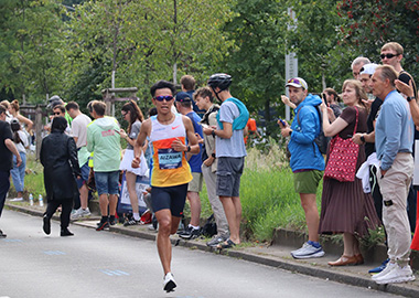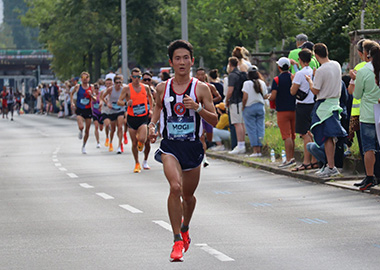 9月21日(日)、スタート時の気温は25度と季節外れの暑さの中でスタート。大六野、相澤は5kmごとに14分54秒~59秒のペースを刻み、ハーフ地点を63分02秒で通過。しかし、その後ペースを落として、大六野は12位2時間10分49秒でゴール。相澤は後半に脚のアクシデントが発生し、大きくペースを落としてしまい2時間35分54秒でゴールしました。