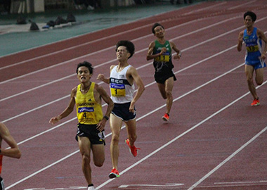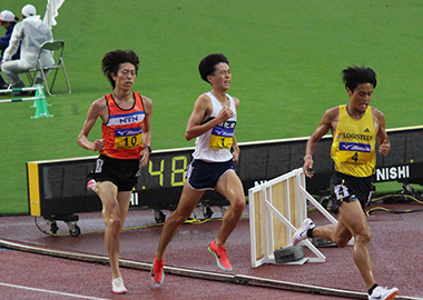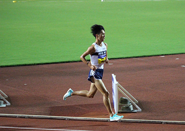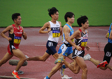 男子5000m第2組に亀田、山本が出場。序盤、亀田は先頭集団前方、山本は後方に位置取りレースを進めました。最初の1000mを2分45秒で通過すると、3000m付近で縦長の展開になりました。4000mで亀田が飛び出しましたが、力及ばず5位13分47秒45でゴール。山本は3000mからじわじわと離されて10位13分56秒98でした。