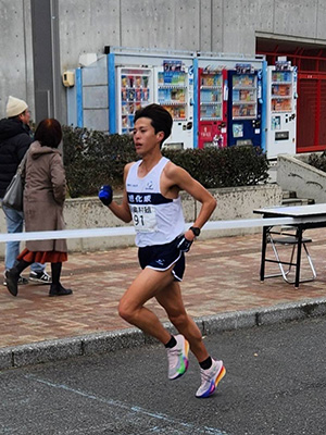 12時00分スタート。序盤は今江勇人選手(GMOインターネットグループ)が先頭に立ち、加藤、亀田はその集団でレースを進めました。7km過ぎに横田玖磨選手(トヨタ自動車九州)が飛び出し、集団が分かれる展開となりましたが、加藤、亀田は冷静に第2集団でレースを進めました。10kmは加藤、亀田ともに28分46秒で通過。12km過ぎ、亀田が脚に痛みが出て徐々に遅れました。一方、加藤は第2集団の中でレースを進めて19km付近で先頭に立ちました。しかし、20km手前で平山大雅選手(コニカミノルタ)がスパートをかけると加藤は5番手に後退しました。その後はゴールまでその差は縮まらずに加藤は5位・1時間00分53秒【大会新・自己新】でゴールしました。亀田は脚の痛みを抱えながらも最後まで走り切って63位・1時間03分54秒【自己新】でゴールしました。